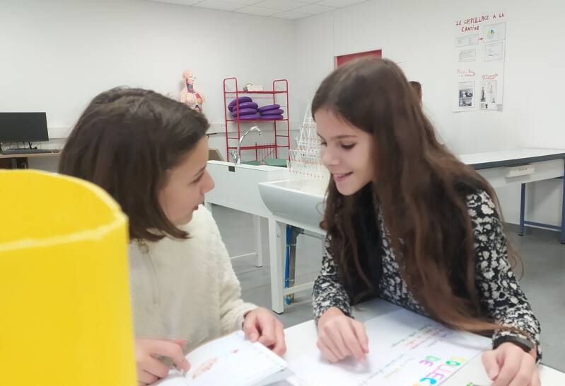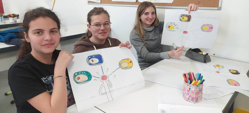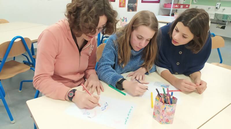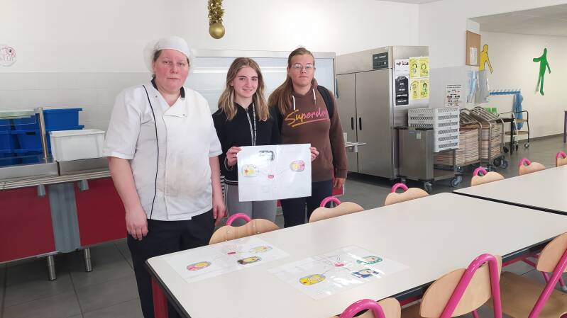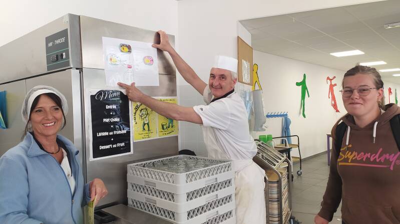 Il y a cependant des points d'amélioration. Du pain, du riz et des pates sont souvent jetés. Les éco-délégués demandent, par une série d'affiches, aux élèves de réfléchir sur leur faim avant de choisir leur assiette: petite, moyenne, grande faim. En effet, les élèves peuvent demander une assiette plus ou moins pleine. Et ceux du dernier service peuvent se resservir. Mandy, Romane, Sophia conçoivent les affiches et vont les placer au réfectoire.