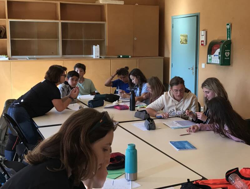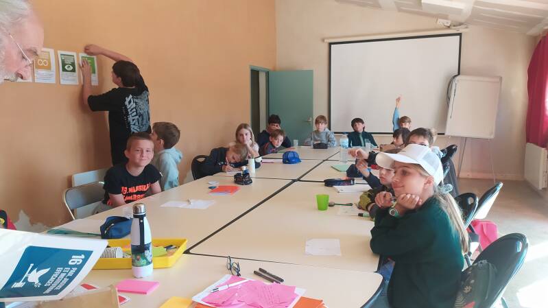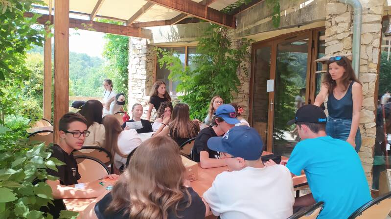 L'après-midi alterne entre des moments de travail et des jeux de coopération. Ces jeux permettent de mettre en œuvre l'intelligence collective des élèves. Bruno et Iris en chef d'orchestre animent.