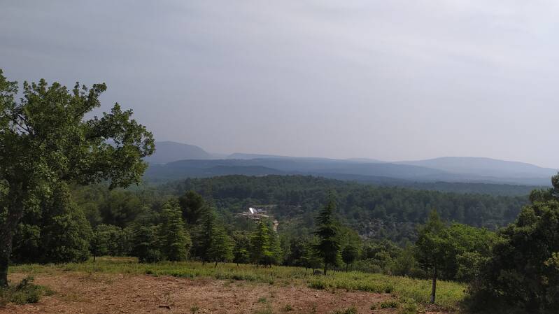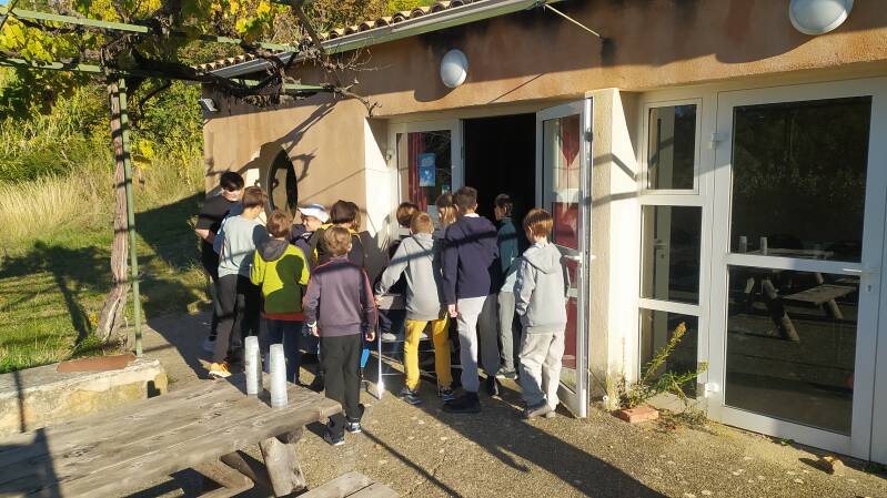 Après une immersion matinale dans la douceur de la forêt, les élèves arrivent à la maison de la biodiversité qui surplombe Manosque. La vue est magnifique. Bruno et Iris du PNRL nous accueillent.