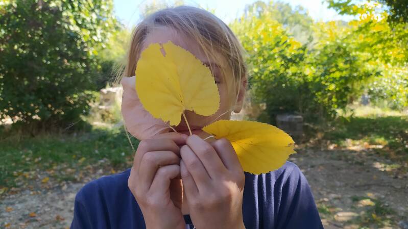 Une marche rythmée et enthousiaste dans la forêt nous amène au-dessus de la Thomassine. Nous arrivons à la Maison de la Biodiversité du Parc Naturel Régional du Luberon où nous sommes accueillis par Bruno ADAM dans les vergers de variétés anciennes de pommiers et d’oliviers.